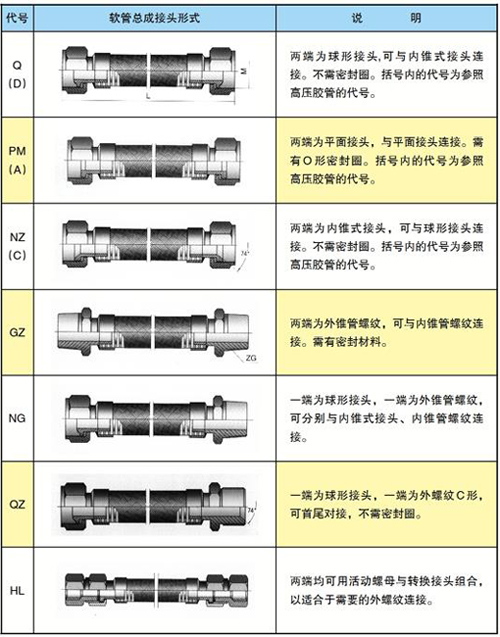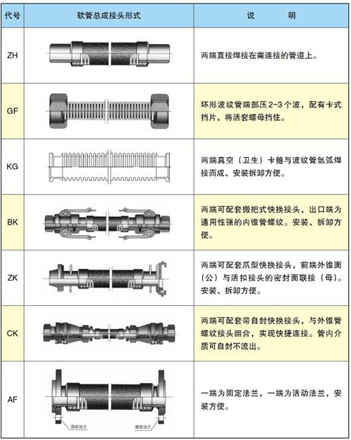 波紋金屬軟管標準接頭型式和代號